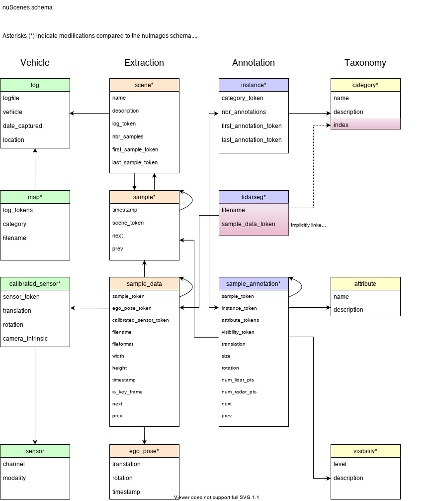 추가로 2020년 7월에 nuScenes-lidarseg를 공개하였는데, 4만개의 프인트 클라우드와 1000개의 장면에 14억개의 포인트가 포함되어 있습니다.